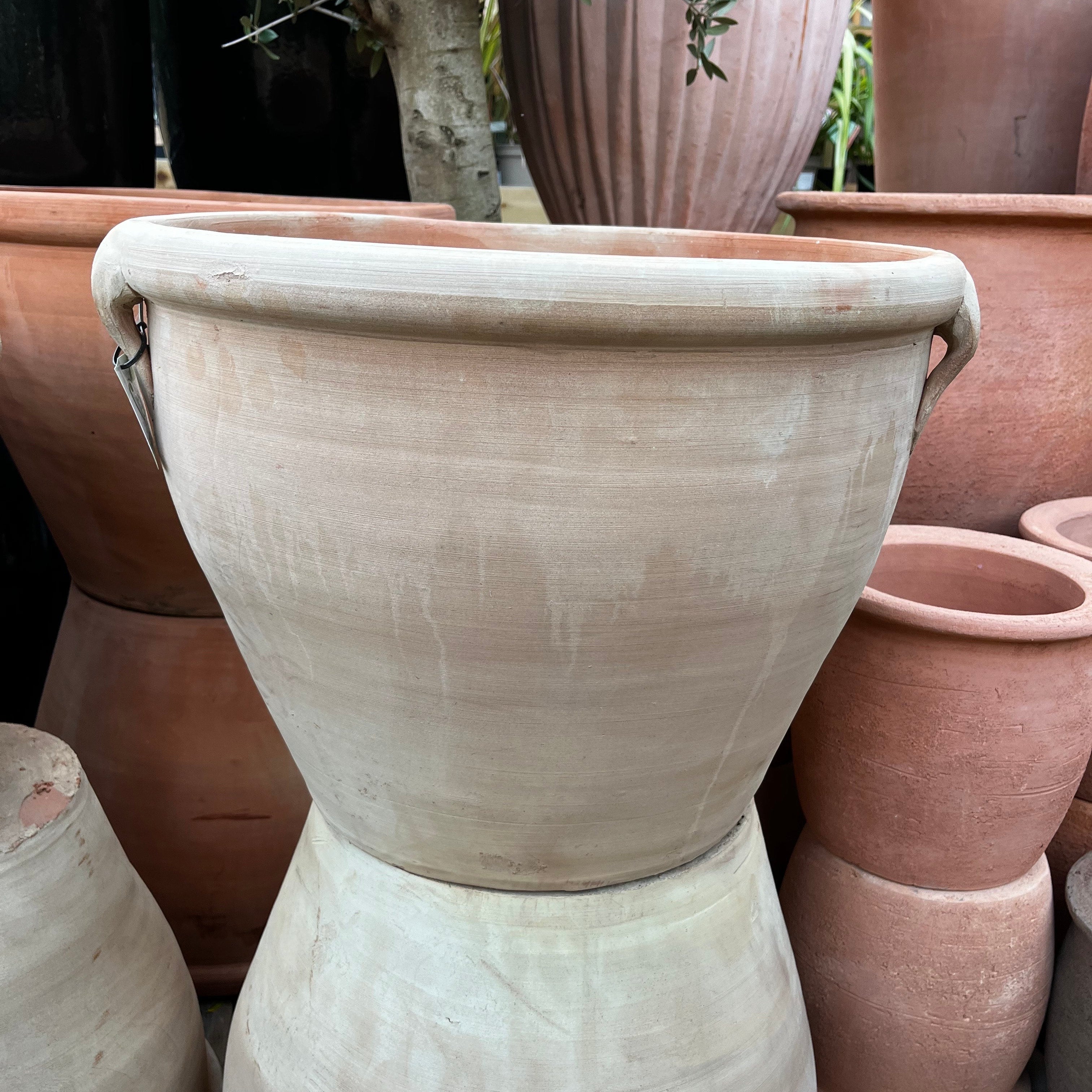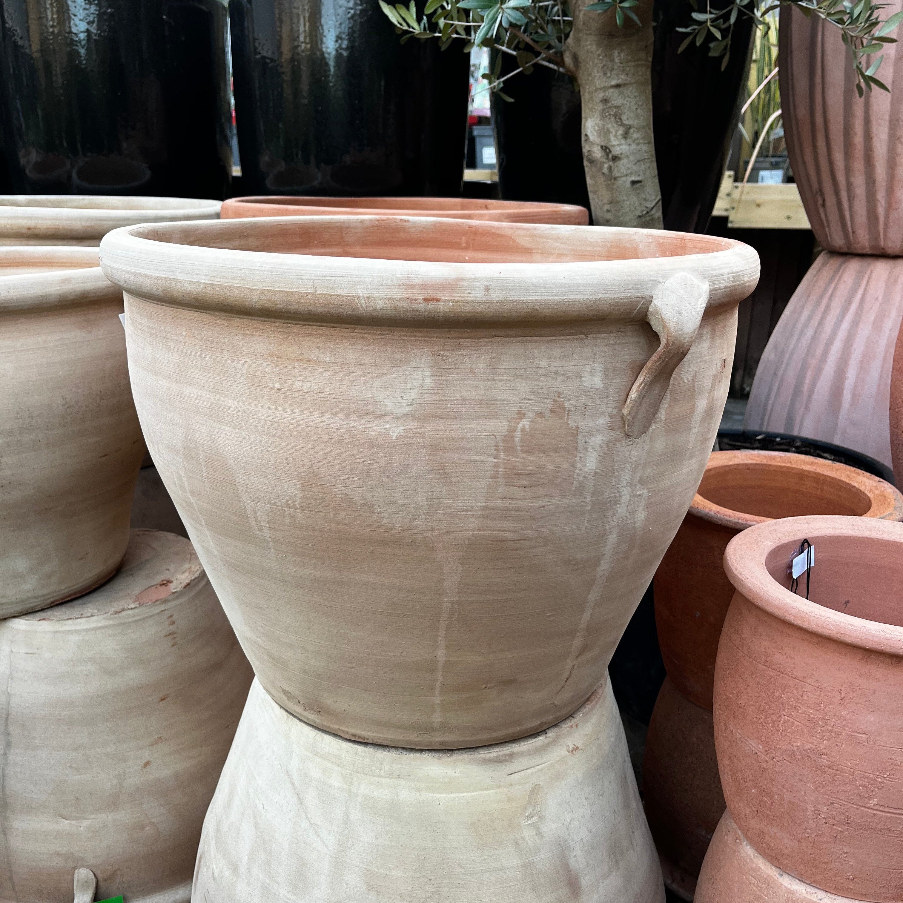 Handmade terracotta bowl planters with a classic, old-world style from Deroma.